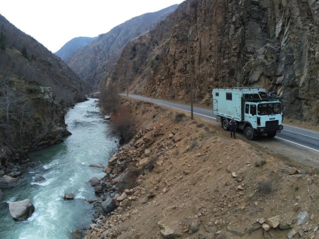 Finie la côte et sa mer d’huile, nous quittons la jolie crique avec un Arty, toujours poussif (il est grand temps qu’on cherche un garage pour une petite inspection), nous emmène quand même 150 kms plus loin, dans les hauteurs après Artvin. La vision des lumières de cette ville s’étalant sur des flancs qui semblent bien raides et de son énorme barrage est magique, et doit être encore plus impressionnante de jour.