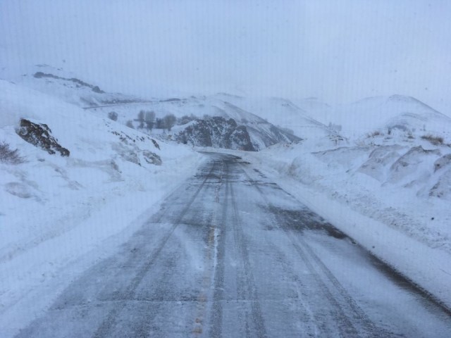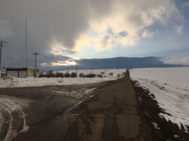 Il est à présent temps de mettre tranquilllement le cap sur Rasht, via Zanjan que nous espérons pouvoir atteindre par la route secondaire qui passe par Dandy. Nous avançons prudemment sur une voie qui n’a sans doute pas été déneigée depuis quelques temps, et croisons quand même quelques camions et petites voitures qui nous confirment la route est a priori bien ouverte. Mais le soleil faiblard décline déjà, et l’état de la chausée ne s’améliorant pas, on préfère ne pas tenter le diable : demi-tour tant qu’on peut donc pour un gros détour via Bijar plus au sud.