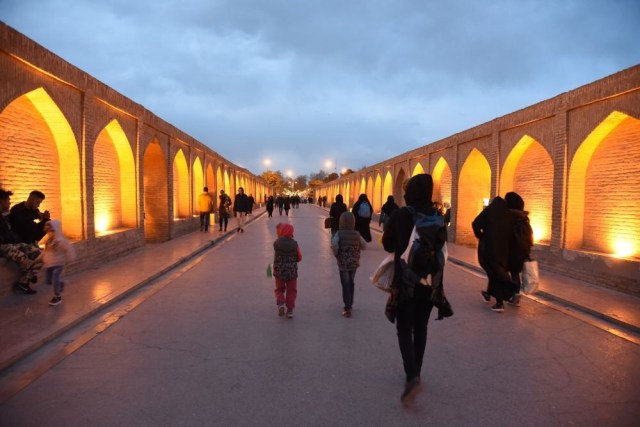 On s’en éloignera quand même pour aller visiter la très esthétique cathédrale arménienne de Vank dans le quartier de Jolfa et le pont Si-o Seh l’un des nombreux ponts posés sur l’hallucinante rivière asséchée Zayandeh (on apprendra plus tard qu’elle a été détournée pour permettre des cultures de pistaches plus au nord et n’est remplie qu’une partie de l’année à l’aide d’un barrage).