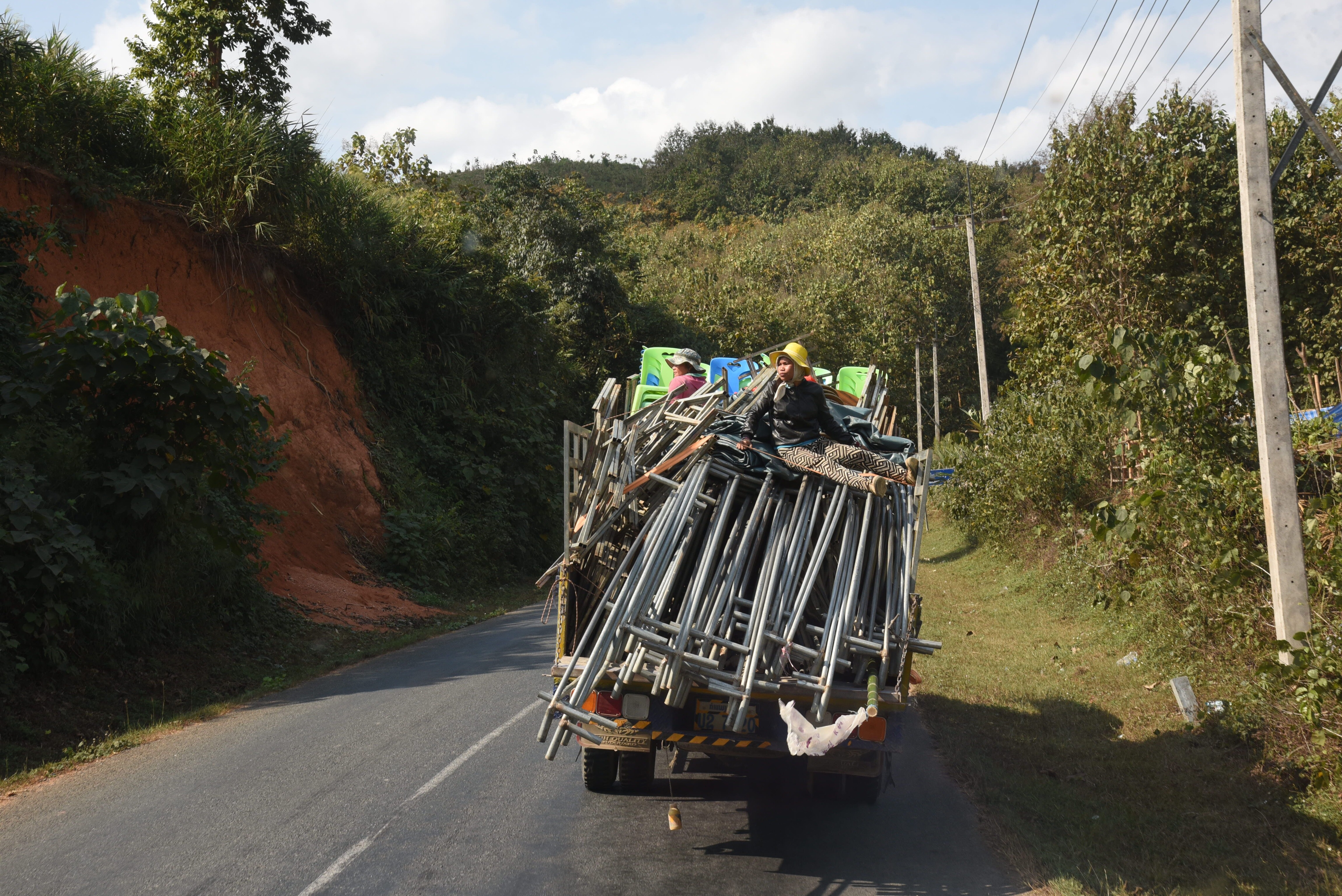 Nos derniers jours au Laos seront marqués par l’enchaînement des bornes kilométriques rouges et blanches si semblables à celles de la France, à travers des paysages toujours très vallonnés de la province de l’Oudom Xay, avant la ville frontière de Muang Ngeun testée avec succès par la Smala quelques jours plus tôt. Une bien bonne nouvelle, car cela nous évite de redescendre jusqu’à Vientiane, voire Takhek.