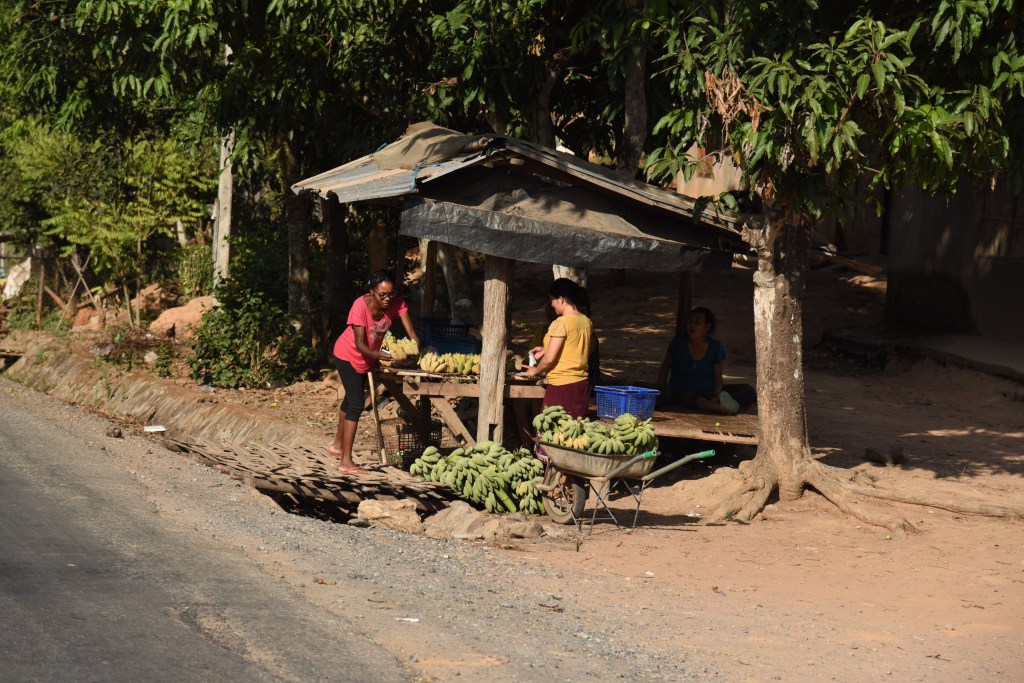 On dépense nos derniers kip, et hop c’est parti sur des routes toujours méandreuses, en conduisant à gauche, sous un soleil toujours étincelant. Retrouvant les “Sawat Di Khaaa!”, on roule dans cette région agricole et très peu habitée, passant devant de petits étals débordant de clémentines locales, et plus surprenant, devant des exploitations de fraises!