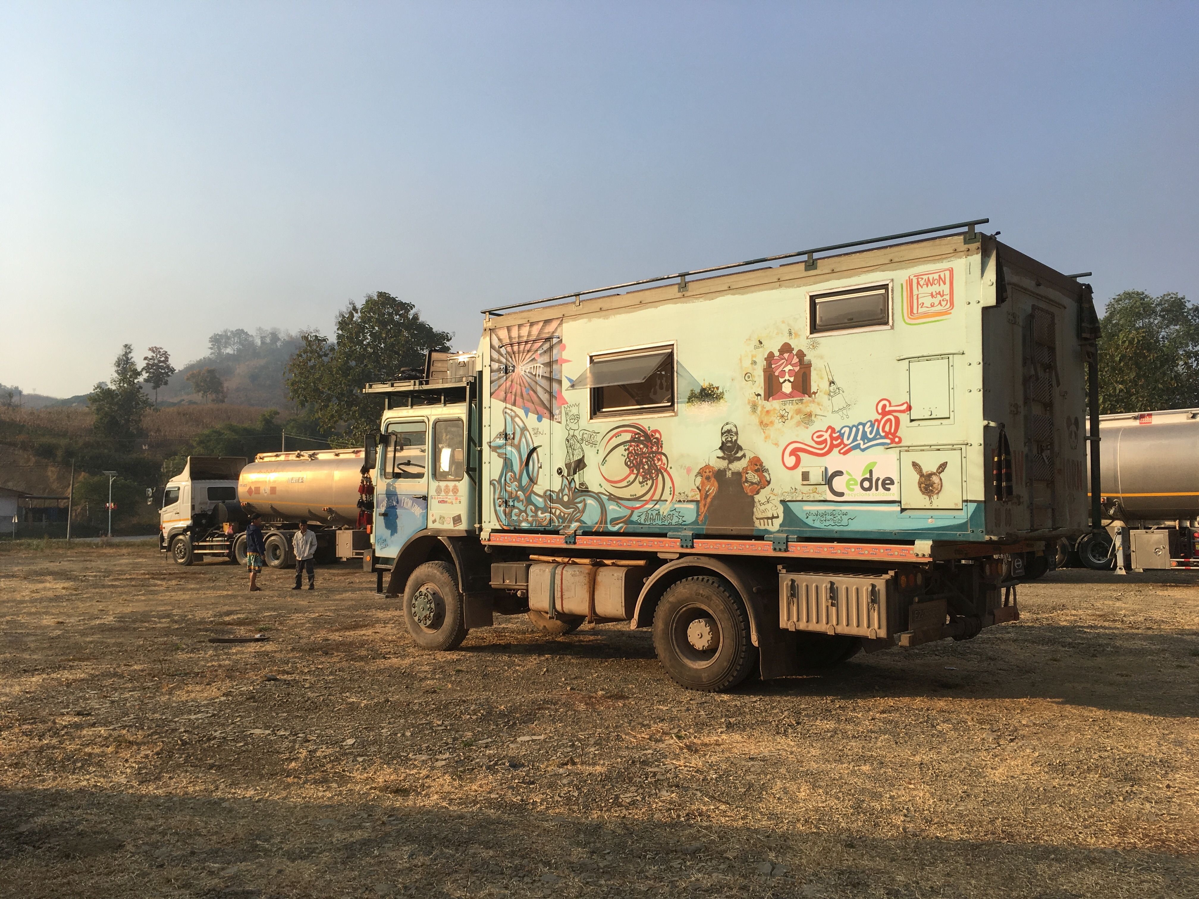 Tout en avançant, on réfléchit à notre stratégie pour la demande de visas qu’on prévoit de faire à Bangkok. Évidemment, sans le camion, donc pas tous ensemble ; ce qui veut dire à nouveau un aller-retour en bus pour Loïc depuis une ville plutôt au Nord de la Thaïlande…