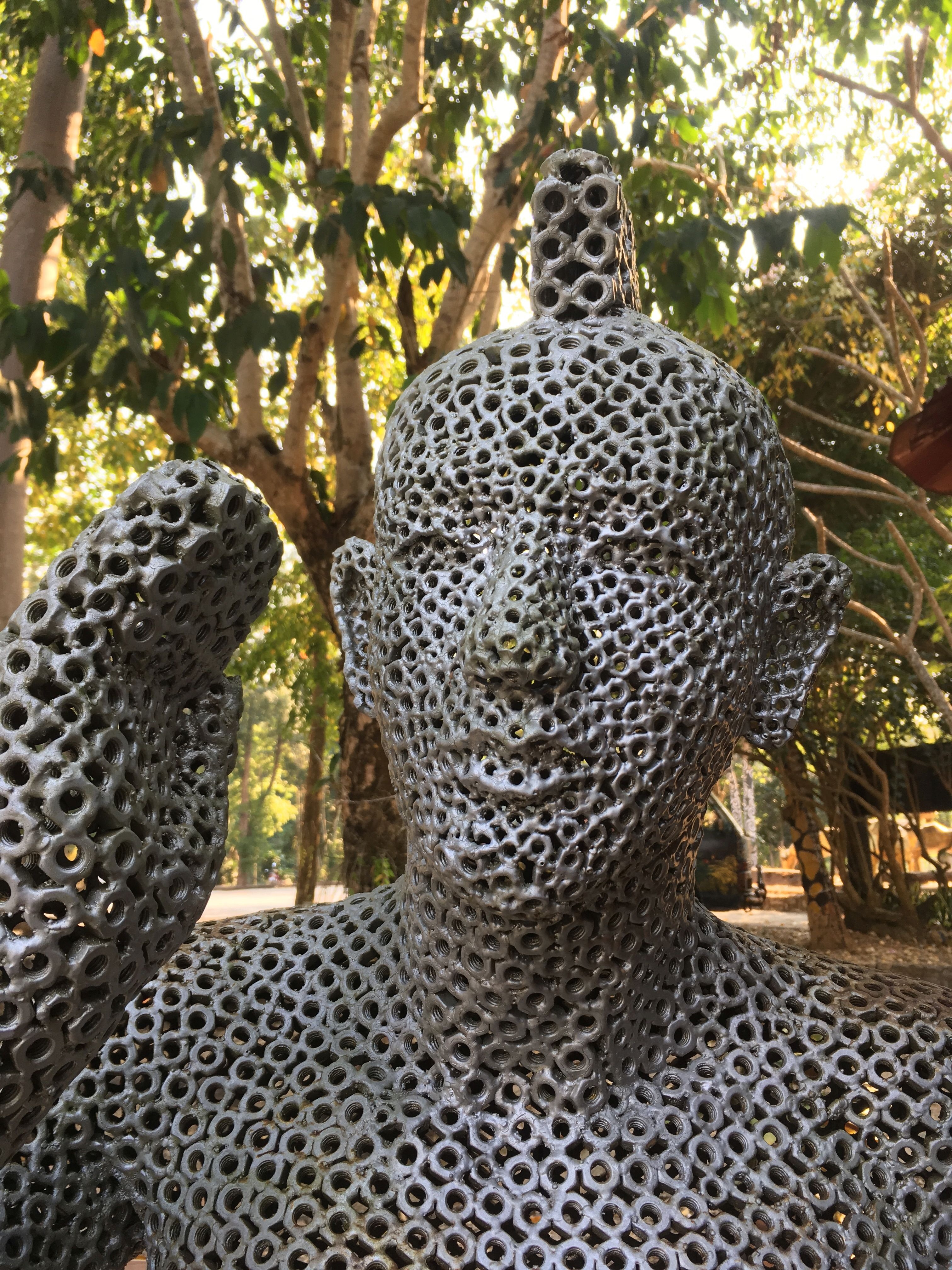 L’heure fatidique approche, on finit de repasser nos arguments et notre histoire toute prête. Avec quelques centimètres de sa barbe de baroudeur sacrifiée, Loïc sera notre ambassadeur, nous laissant patienter pendant une petite heure dans le parc de Buak Hard, qui semble être le seul petit poumon vert de la ville.