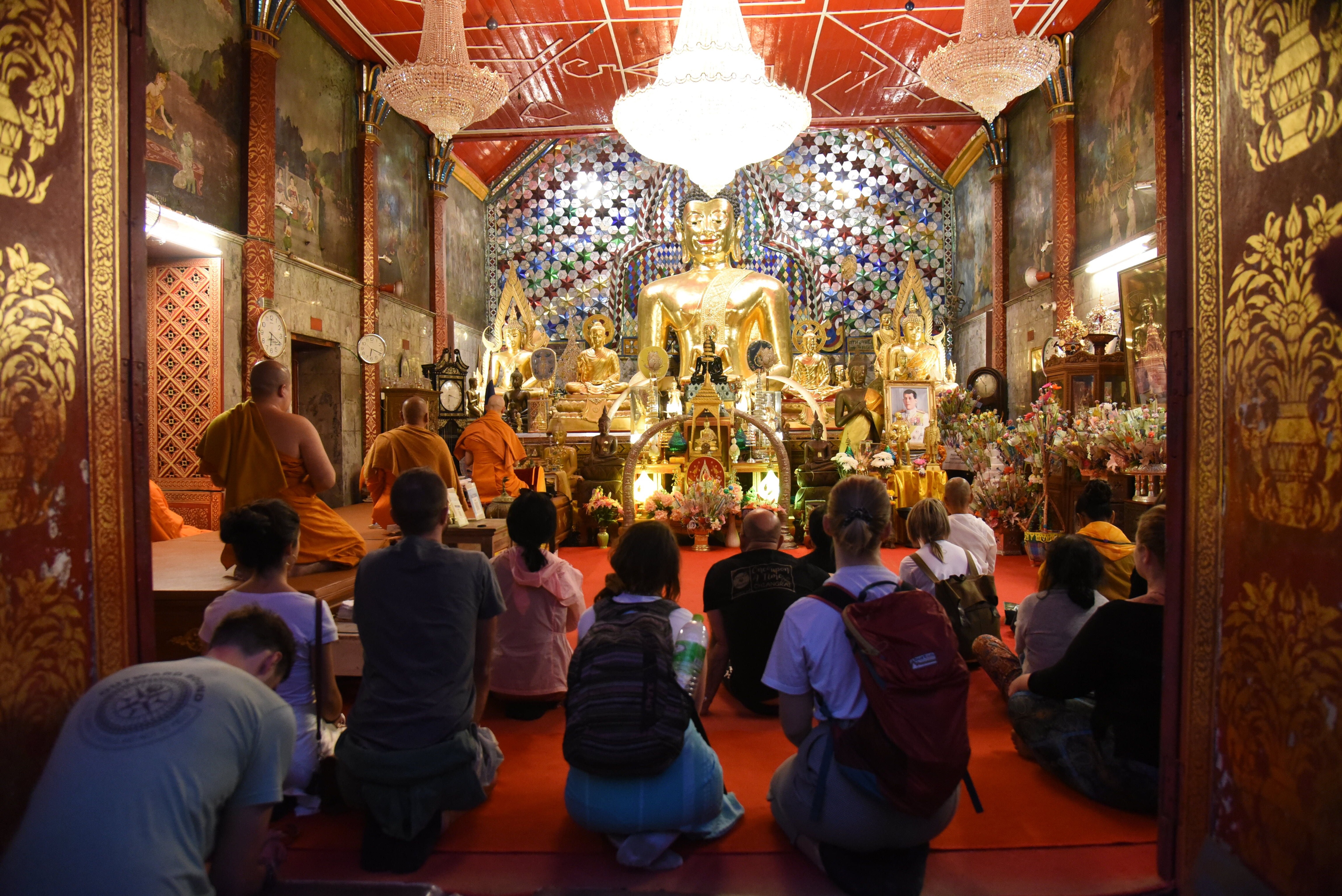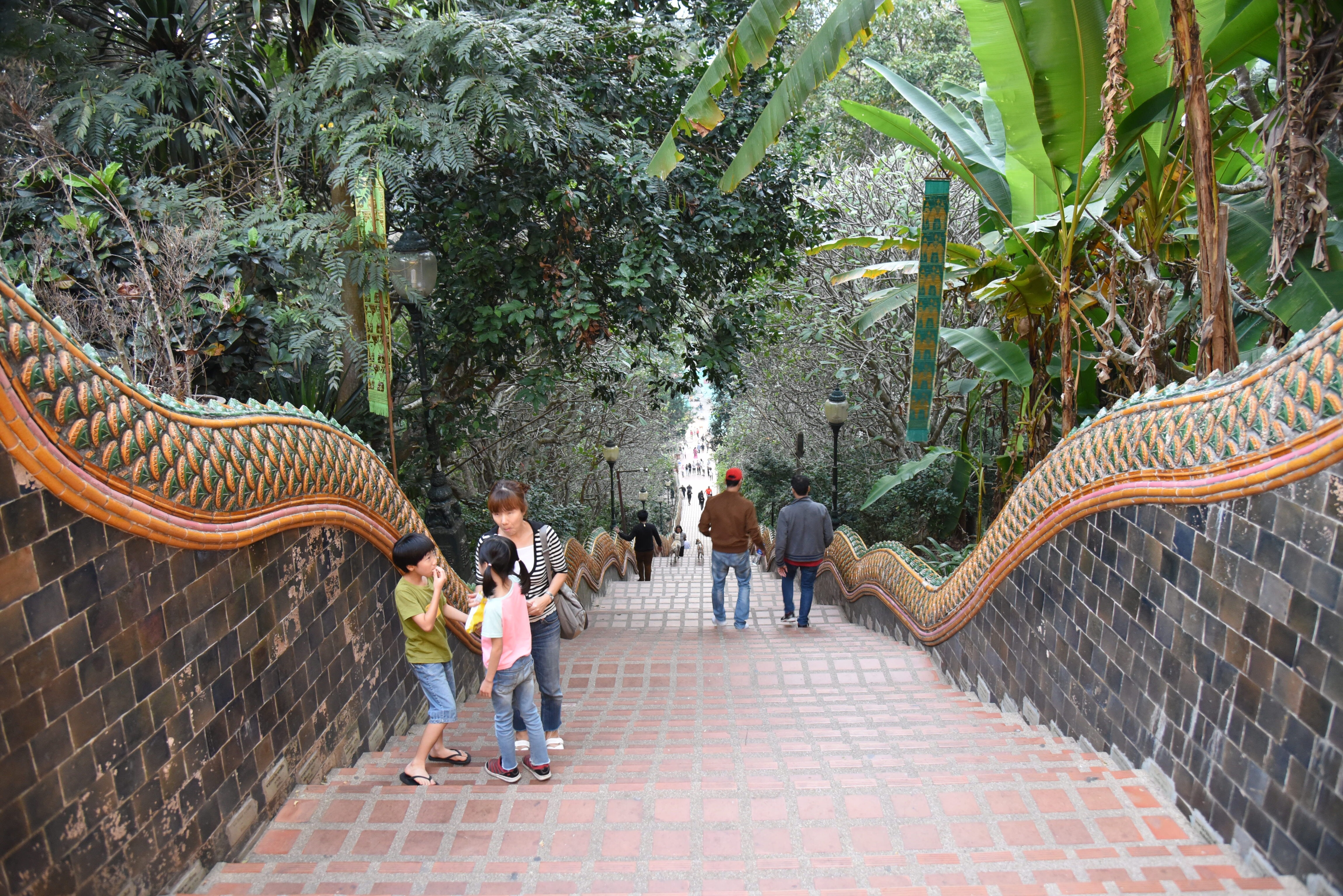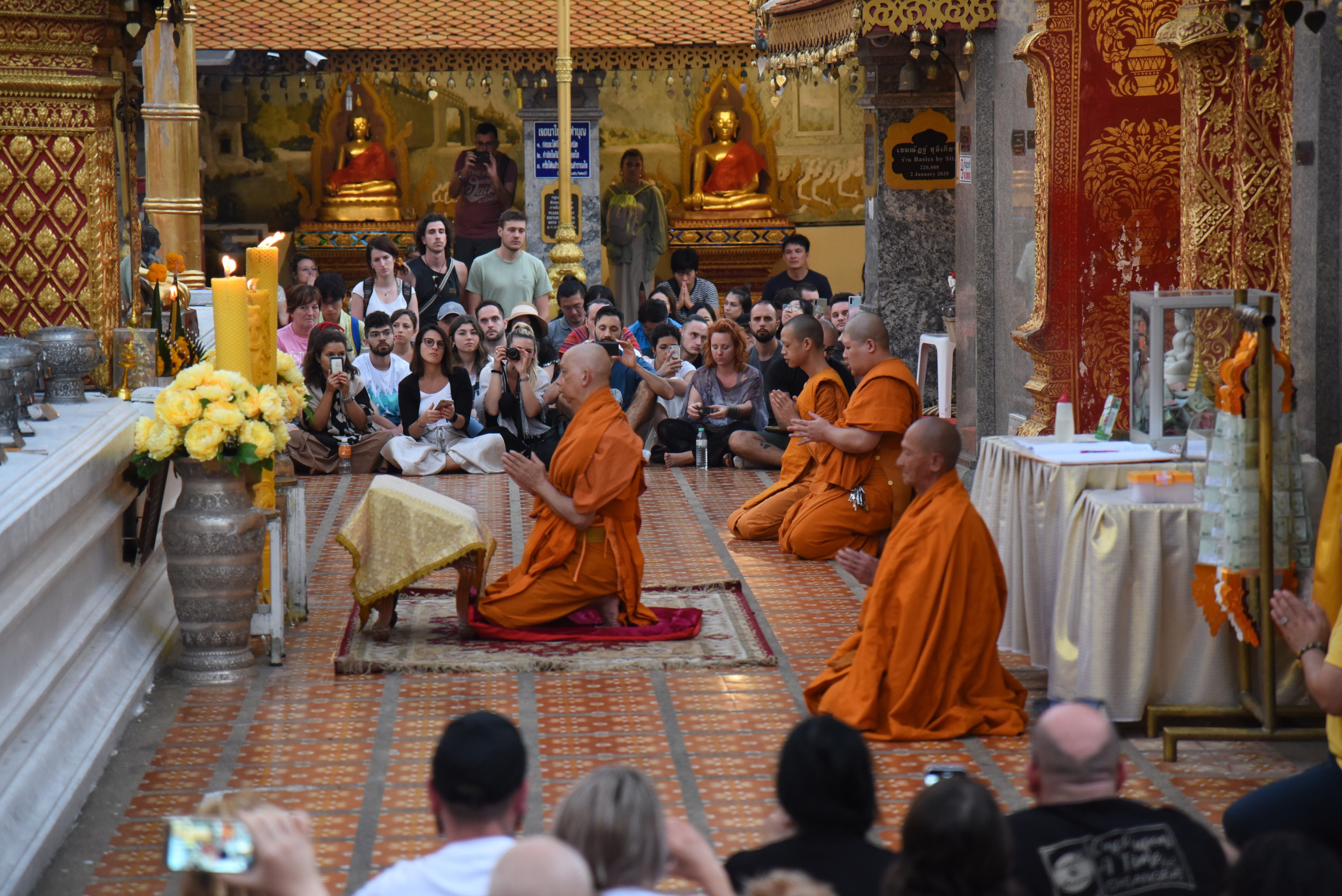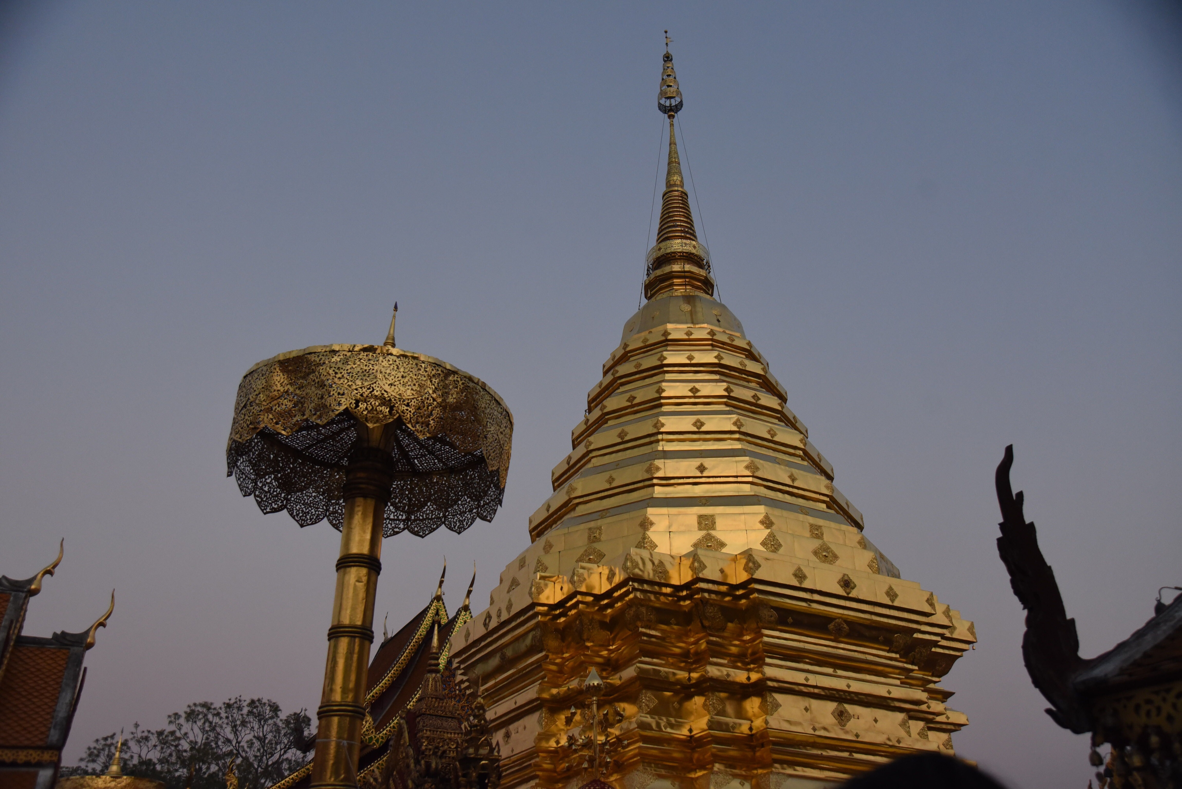 On termine par la visite du Doi Suthep, l’un des lieux bouddhistes les plus sacrés en Thaïlande, où nous arrivons au moment de la prière. La fin de la visite sera un peu perturbée par Ntyalé qui nous fera une petite fugue et une belle frayeur de trente minutes, et qu’on retrouvera en bas en compagnie de visiteurs qui nous la rendront en pleine forme et pas inquiète du tout!