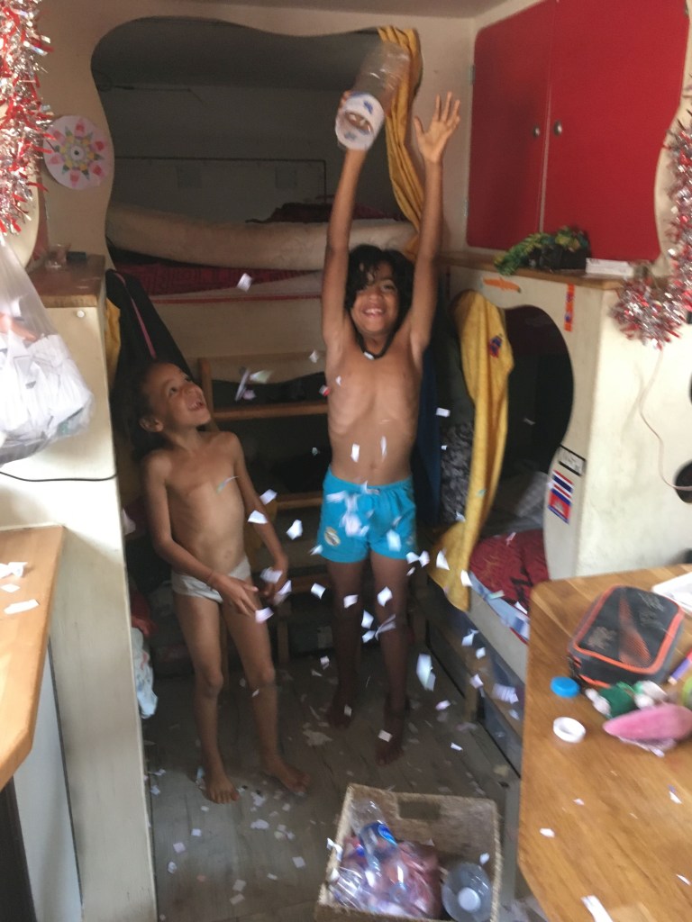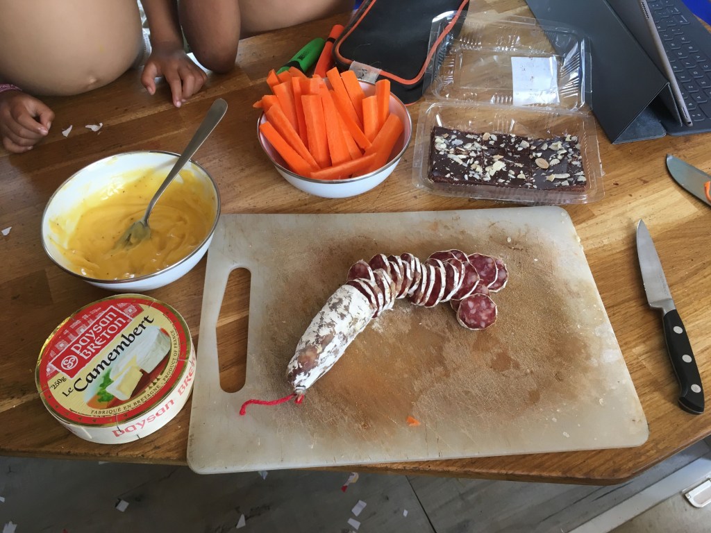 Et bien sûr, on marque le coup (fêtant aussi, au passage, l’apparente éradication de l’agaçante fourmilière que l’on trimballe depuis la Thaïlande!) par une petite “folie” : un super apéro saucisson-fromage-baguette achetés à prix d’or!