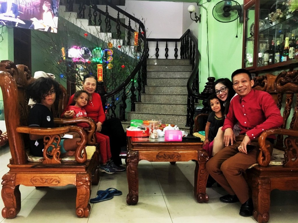 Retour ensuite vers le centre-ville, histoire de trouver de quoi nous restaurer, avant que tout ne ferme. Car les préparatifs du Têt vont bon train dans les magasins et les maisons : nettoyage à grande eau, décorations, confection et vente de gâteaux de riz gluant colorés…Oui, une ambiance très spéciale, dans laquelle le tourisme passe second plan. L’esplanade devant l’écran géant sur le front de mer se remplit de monde petit à petit, dans une ambiance familiale et bon enfant.