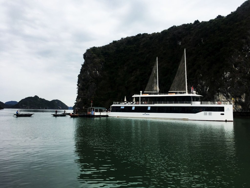 C’est parti pour une journée de navigation sur les eaux calmes de la baie de La Han, certes plus petite et moins connue que sa “grande soeur” d’Ha Long, mais loin de démériter en beauté. Au détour des pics karstiques de toutes tailles, apparaissent les charmants petits villages flottants de pêcheurs perpétuant un mode de vie séculaire, tout en essayant de conjuguer préservation des indispensables ressources halieutiques et retombées du tourisme.