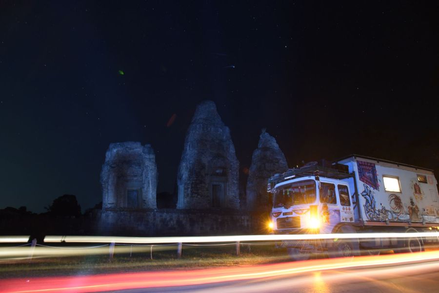 Et on commence par…une crevaison ! Sur le même pneu que celui changé seulement 10 jours plus tôt, il doit y avoir une faiblesse de ce côté…Allez, arrêt en bord de route et démontage manuel à la force des bras de Loïc, avant que des locaux ne le conduisent à 2 kilomètres de là, pour …